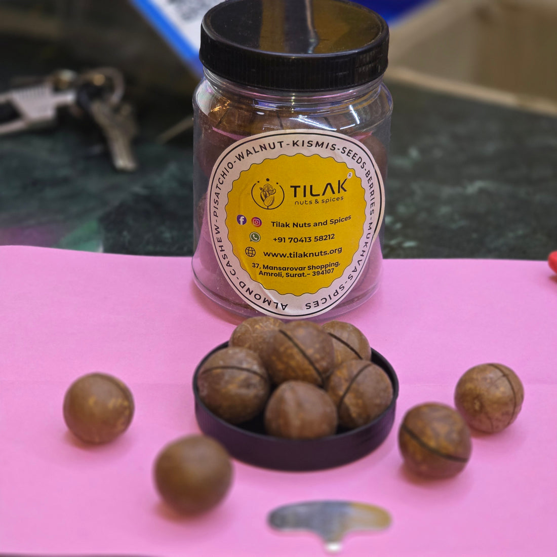 Tilak Nuts & Spices છેલ્લા 5 વર્ષથી ગ્રાહકોને ઉત્તમ ગુણવત્તાવાળા ડ્રાયફ્રૂટ, નટ્સ અને મસાલા પ્રદાન કરી રહ્યું છે. અમારી બ્રાન્ચ અમરોલી, સુરત અને નિકોલ, અમદાવાદ ખાતે કાર્યરત છે.